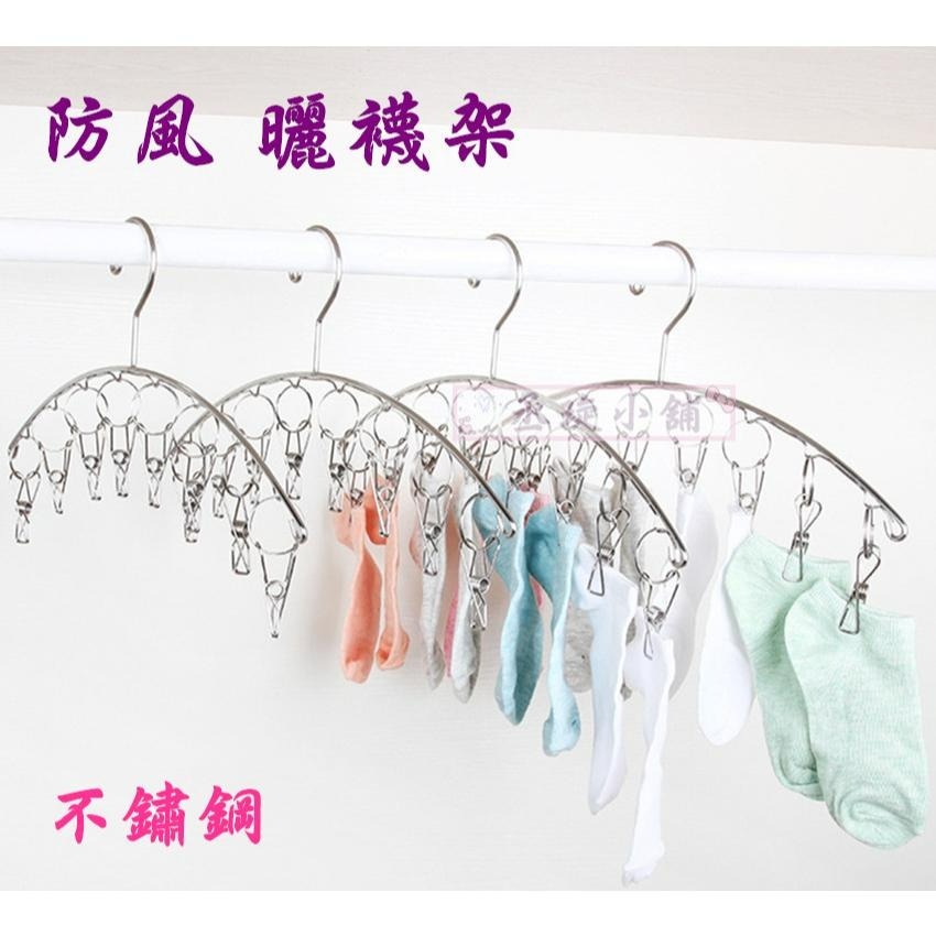 不鏽鋼 防風 一字 弧型曬襪架 (8夾)