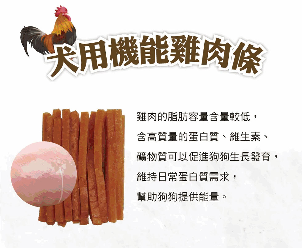 使用方法:依寵物體型與食量,適量餵食,本產品為補充營養保健零食,不適合取代愛犬正餐的主食。