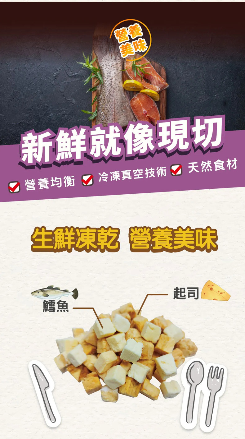 使用方式:直接餵食或加水即可還原成鮮食,食用同時攝取大量水分。 可當作零食或加入乾糧混合餵食。