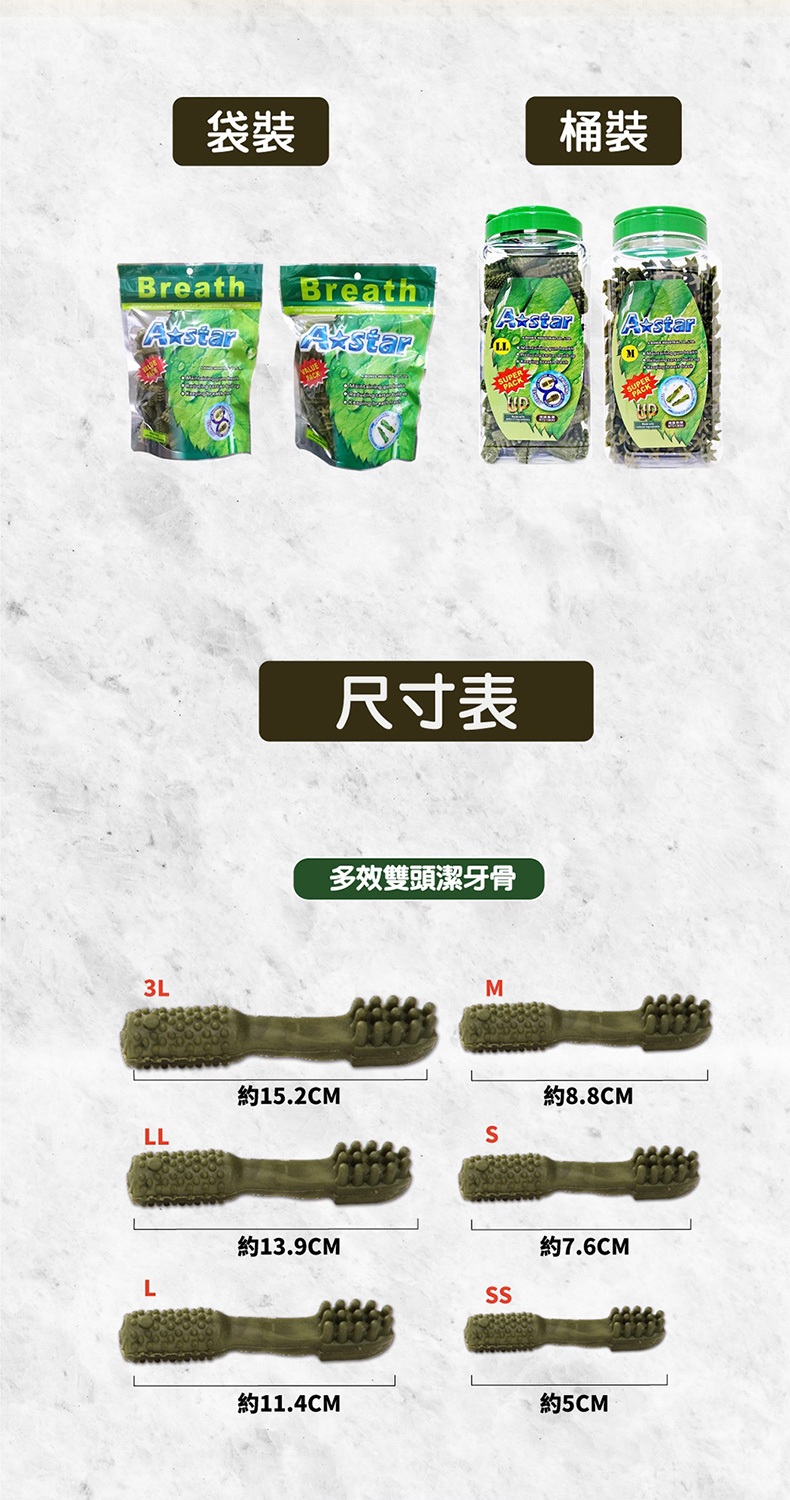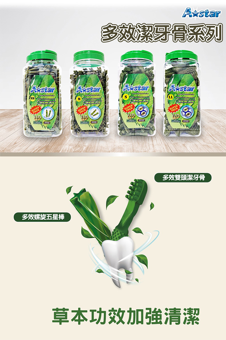 A☆star Bones多效雙刷頭潔牙骨是您的愛犬360度、全方位的除臭潔牙零食。