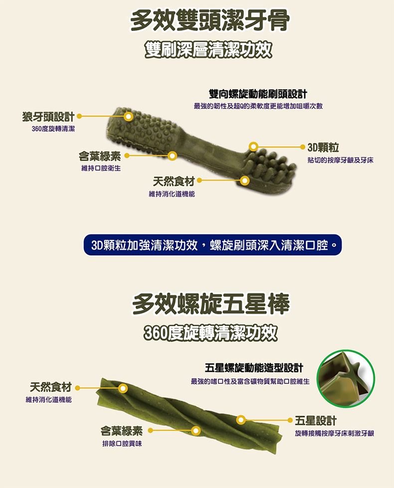 美國A-star Bones多效雙刷頭潔牙骨,採最新型多效雙刷頭設計,