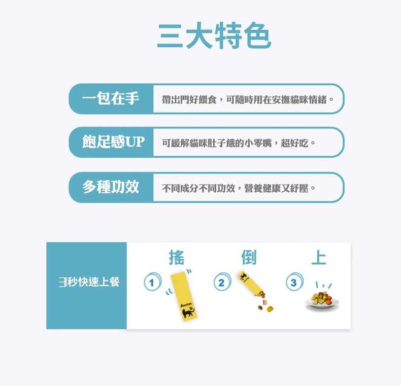 使用方式:依寵物體型與食量,適量直接餵食,多食無妨。