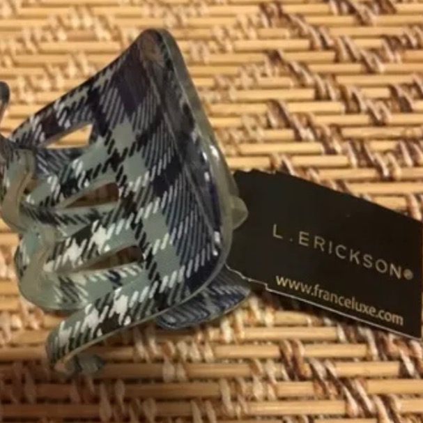 正版 L. Erickson 中型壓克力抓夾 中型鯊魚夾 藍色格子交錯色 寬2寸 高約1寸