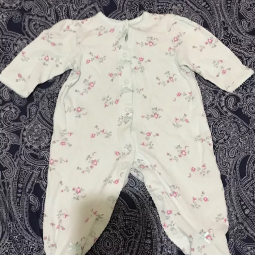 二手 近乎全新 美國 little me 嬰兒連身包屁衣(含腳) 淡綠色底白點小碎花 size:0-3M