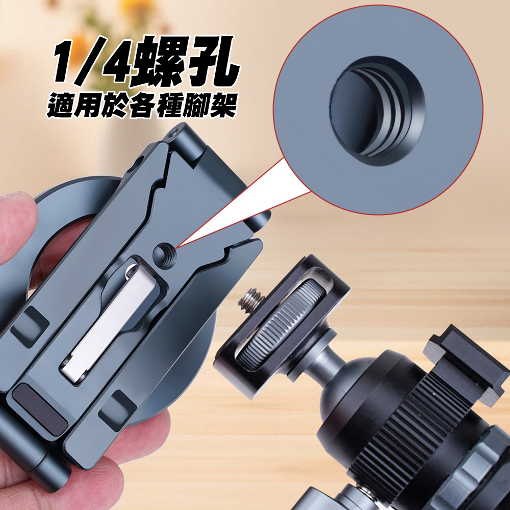 手機支架解放雙手、握把收納可當自拍桿、配合攝影腳架拍攝無負擔