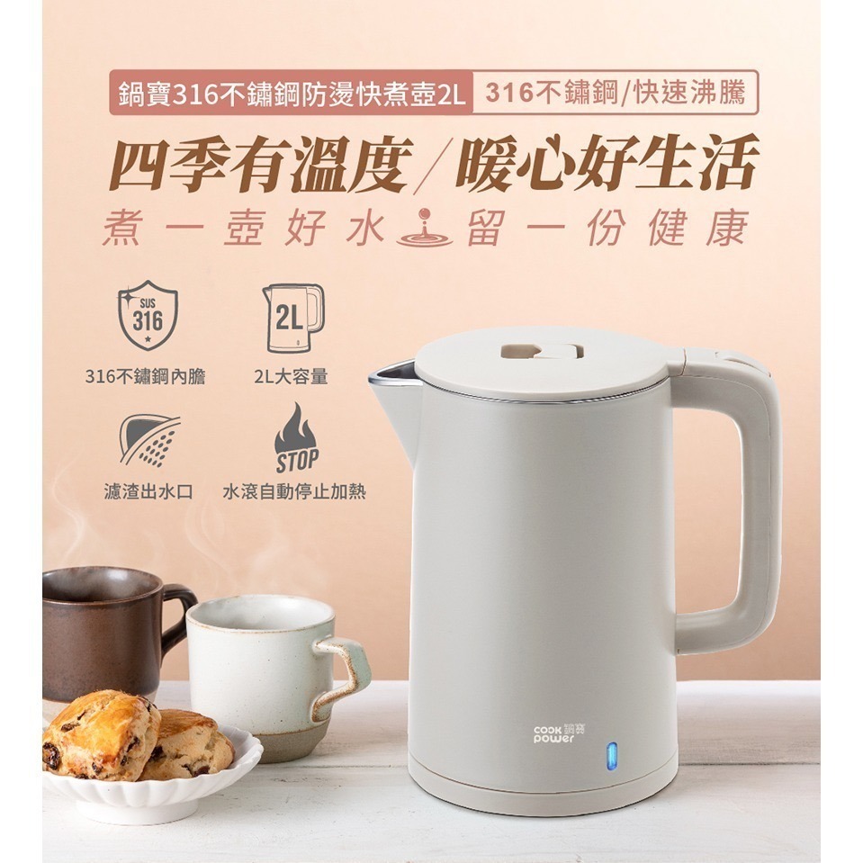 品名:【鍋寶】316不鏽鋼防燙快煮壺2L-奶茶