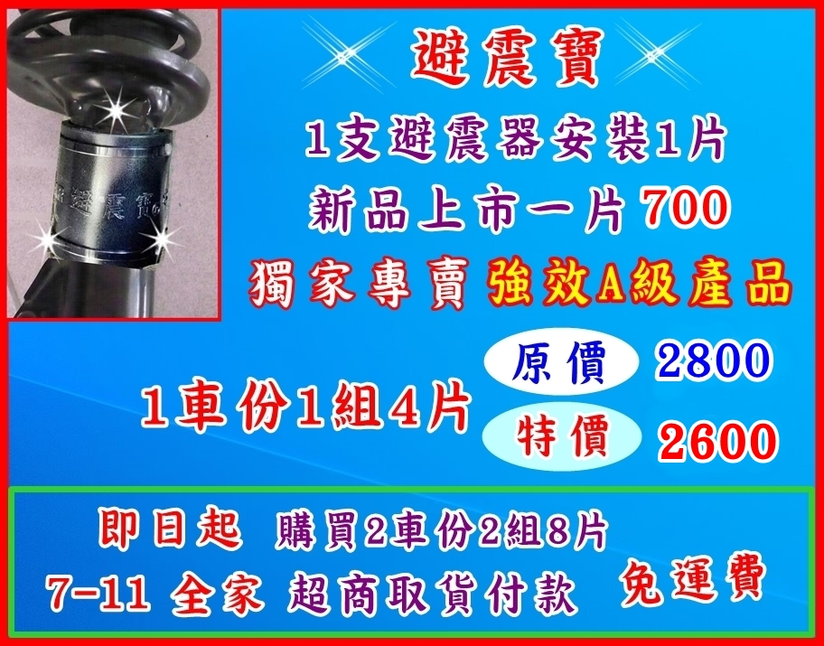 "避震寶"1車份4片原價2800,優惠價1車份4片2600