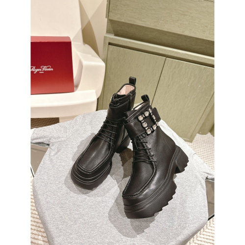 【Roger Vivier】RV雲朵方鑽系帶馬丁靴厚底粗跟短靴。✨✨鞋面採用進口牛皮/牛漆皮,原版開模鑽扣飾,內里墊腳為進口水染混種羊皮,原版開模定制發泡防滑大底。⚠️底厚:5.5cm。🐎size:35-39(40可定做,不退換)