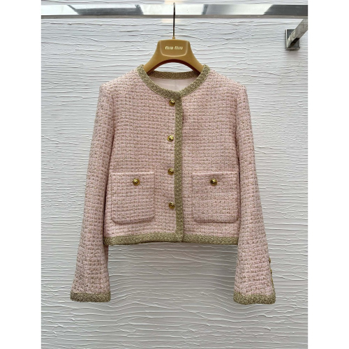 新款上新🌸🌸 🛒Miumi* 25c早春新款粉色千金大小姐回歸粗花呢套裝。Y版定制金絲線、滌綸纖維混紡特種紗線編織面料,交織成格子狀。短小版型外套+高腰A字小半裙。粉色與金絲邊相撞,時尚與優雅結合,甜美少女即視感強勢回歸!一色三碼 現貨發 SML