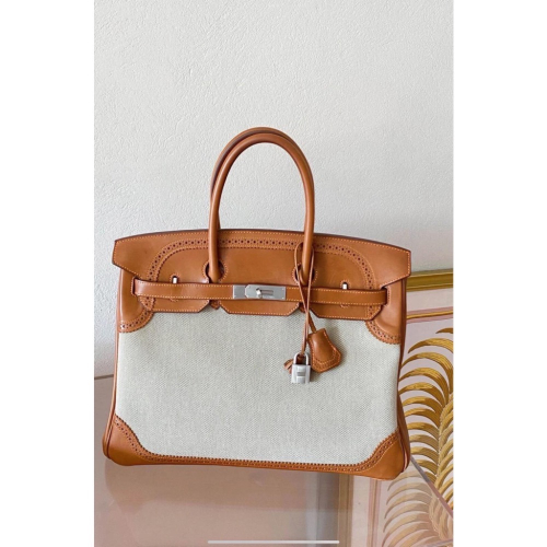 愛馬仕 Hermes 鉑金 Birkin 30cm 光面馬鞍皮拼帆布 老錢風十足