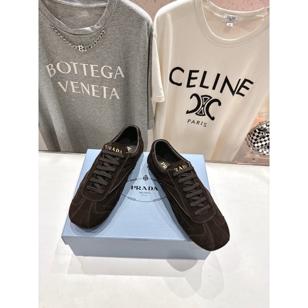 【PRADA 普拉達】情侶款系帶運動休閒鞋德訓鞋。🔻低調奢華懶人鞋,富人的不二選擇!軟膠底素有踩雲感之稱~舒適度百分百💯,細膩反絨皮鞋面,鞋型包裹感十足,柔和而有質感!高級感滿滿!✨✨鞋面採用高絲光牛反絨/進口牛皮,內里墊腳為進口羊皮,原版開模橡膠大底。🐎size:35-44(女40、男45可定做,不退換)