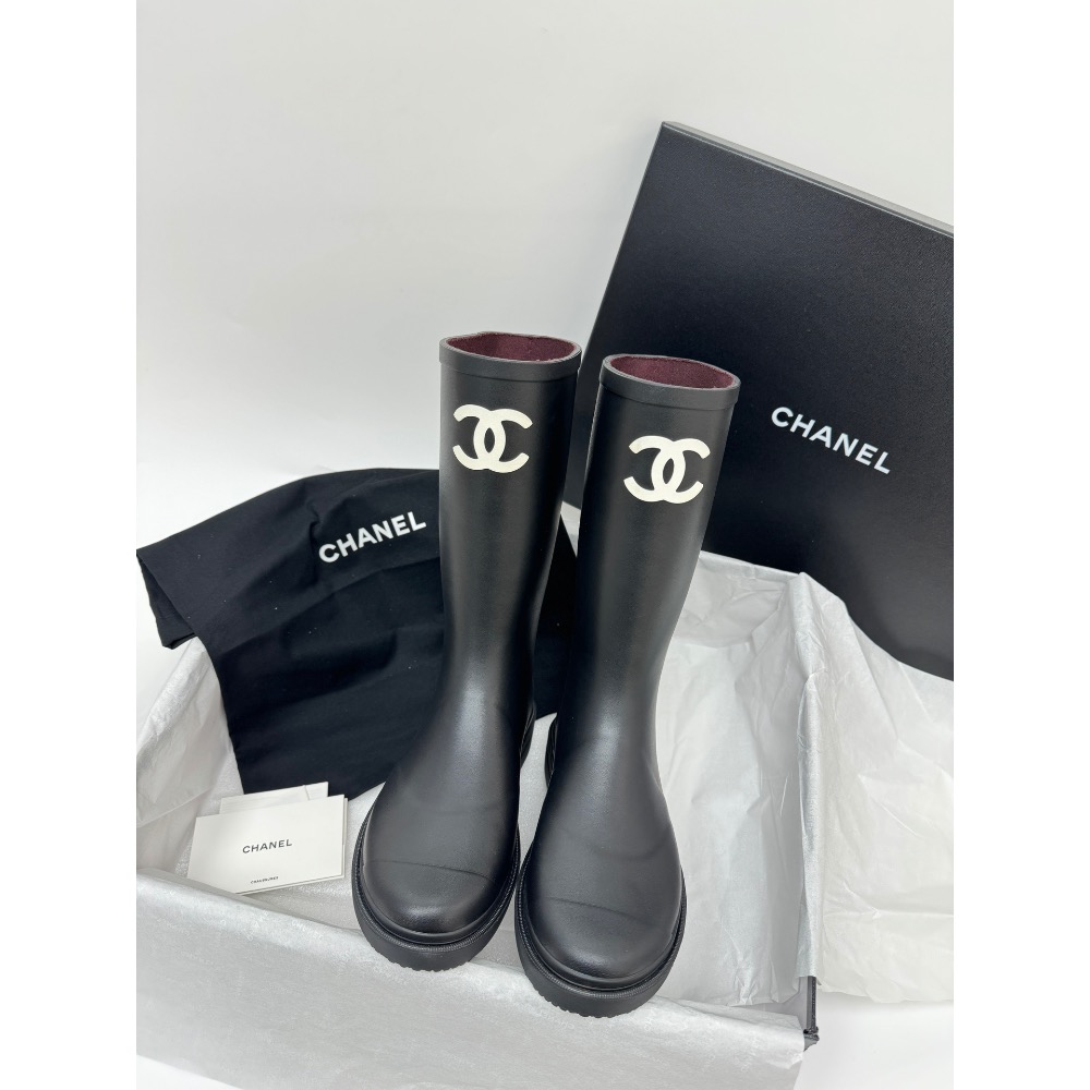 【CHANEL 香奈兒】小香Vintage 中古雨靴長靴。👊頂級版本,無中縫線橡膠硫化工藝,與原版一致,環保橡膠材質,無異味,鞋底和靴筒是組合冷粘工藝,鞋的材質是橡膠,內里絨布貼合不粘腳。防水雨靴,一年四季都可以穿。🐎size:35-40(41可定做,不退換)