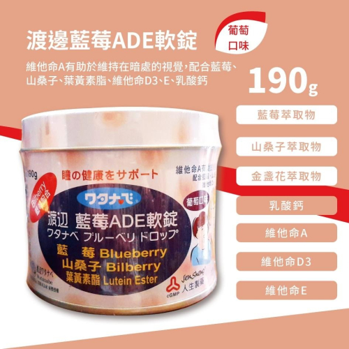 ★成分:砂糖、麥芽糖、果膠、阿拉伯膠、乳酸鈣、藍莓萃取物、葡萄香料、醋酸DL-α-生育醇酯50%、金盞花萃取物、山桑子萃取物、蘋果酸、無水檸檬酸、反丁烯二酸、檸檬酸、檸檬酸鈉、維他命A醋酸鹽11.5%、維他命D3 0.25%、葡萄色素、滑石粉、食品亮光劑。