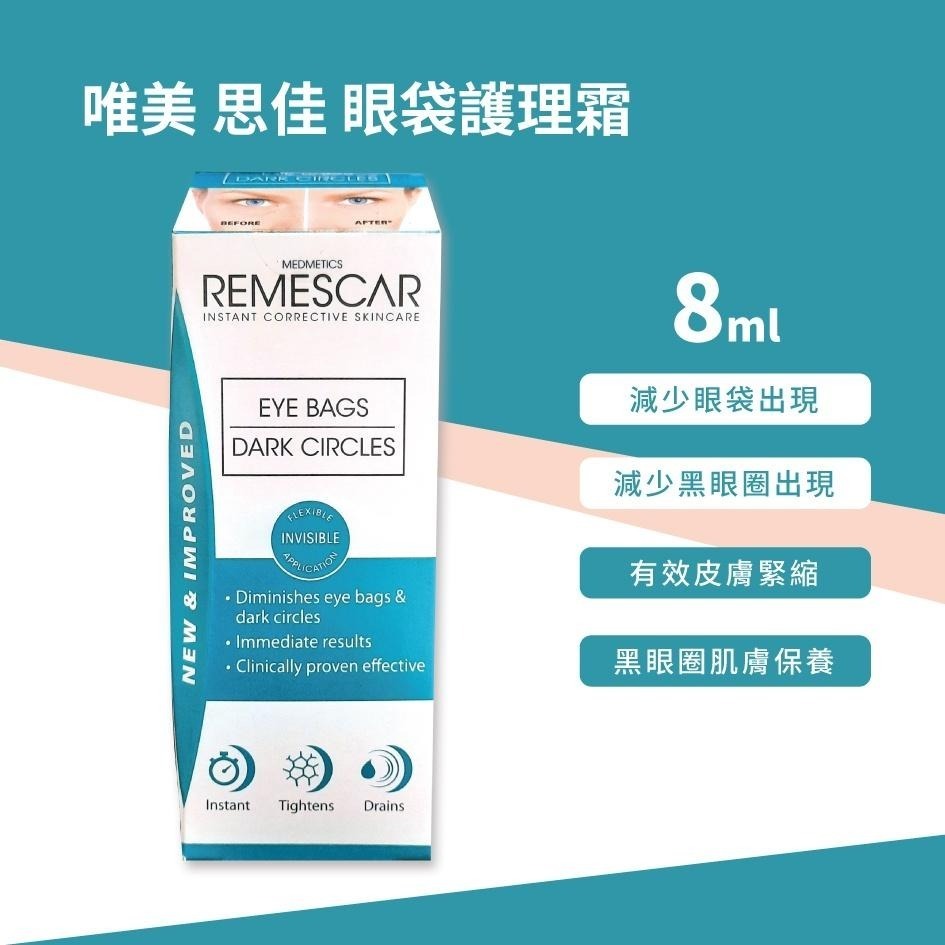 當你感到疲勞或壓力時,眼睛下面的皮膚可能腫脹或黯黑,是身體或精神疲勞的症狀呈現。看起來很累可能對你的信心和自尊有負面影響。 Remescar Eye Bags&Dark Circle是一款立即有效的面霜,每天只需一次,有助於減少眼袋及黑眼圈的出現。 它的革命技術成分EYESYL針對眼袋及黑眼圈的肌膚護理,通過使用粘土礦物質和雙胜肽複合物的獨特組合,這將導致有效的皮膚緊縮,減少眼睛下的液體積聚減少和微小肌暫停作用。這些作用將有助眼睛浮腫及黑眼圈肌膚的保養。