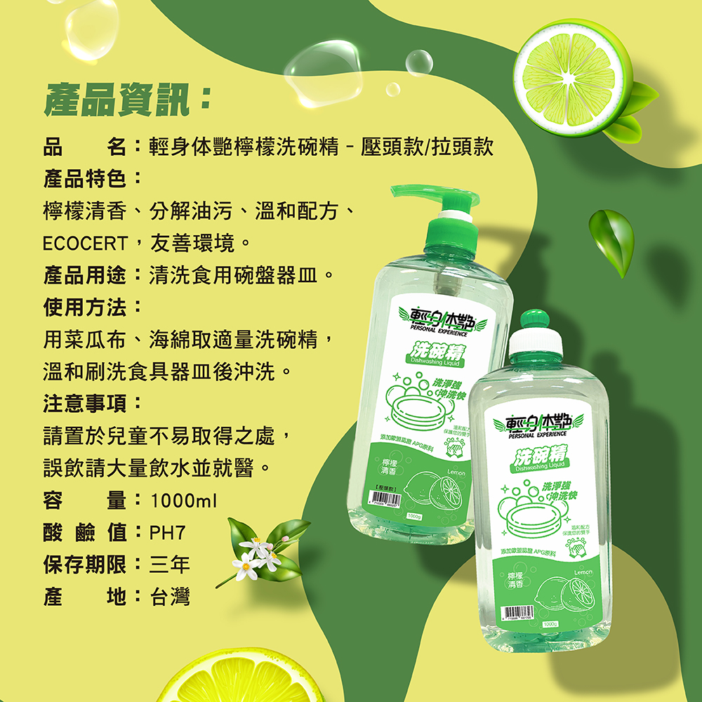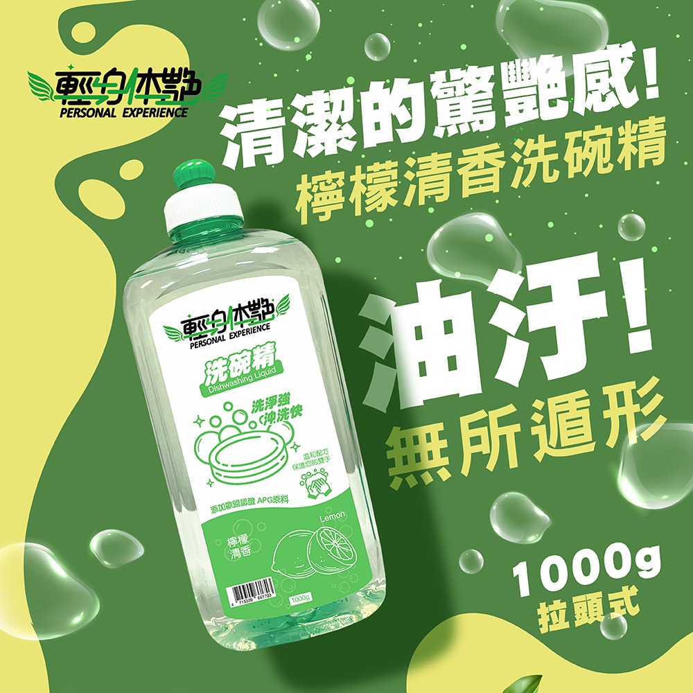 輕身体艷 檸檬 洗碗精 檸檬油添加 溫和不傷手 拉頭經濟版1000ml 妮絲清潔 現貨