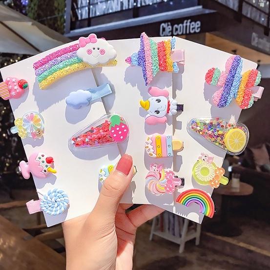 【台灣現貨】6件組亮片流沙兒童安全髮夾 瀏海夾 邊夾 一字夾 鴨嘴夾 尖嘴夾 髮飾 頭飾 髮圈 編髮 水果劉海夾 邊夾
