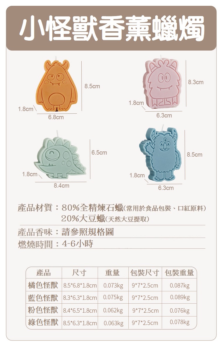➡️ 商品販售只有含「小怪獸香薰蠟燭」,不包含照片其他裝飾及內容物唷!