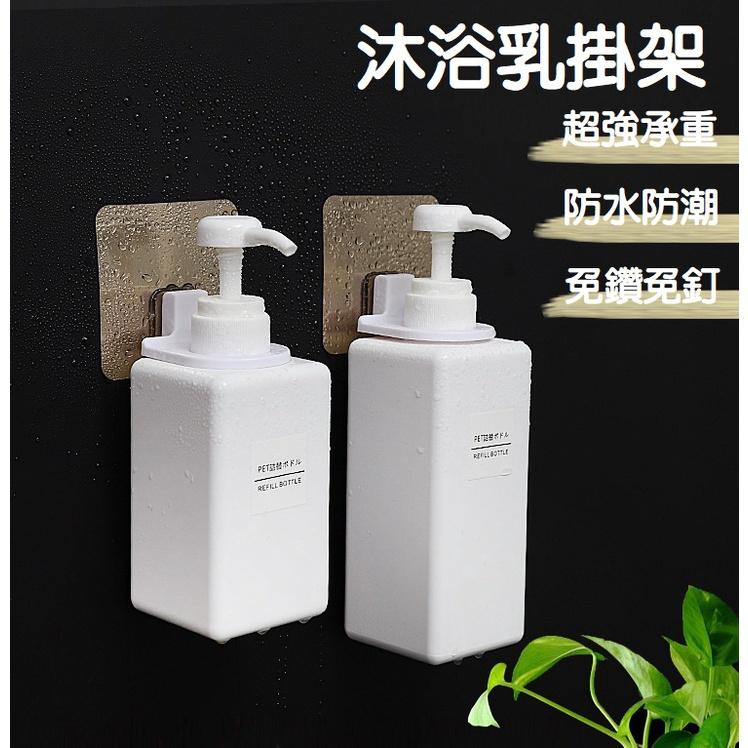【台灣現貨】浴室免釘壁掛式沐浴乳架(附縮口墊) 按壓瓶掛架 無痕洗髮精掛架 洗手乳 掛勾壁掛架 免打孔 上牆