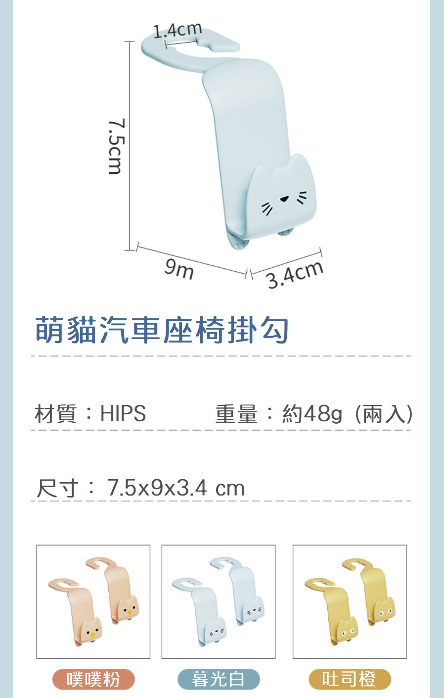➡️ 商品販售只有含「汽車座椅掛勾」,不包含照片其他裝飾及內容物唷!
