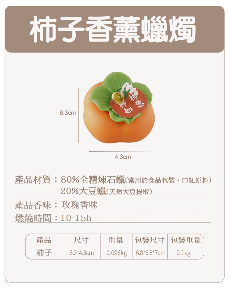 ➡️ 商品販售只有含「柿子香薰蠟燭 」,不包含照片其他裝飾及內容物唷!