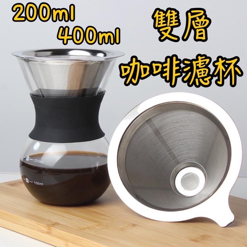 現貨 200ml / 400ml 雙層咖啡濾杯 附隔熱套 咖啡杯 玻璃咖啡杯 耐熱咖啡杯 玻璃杯 濾杯 雙層玻璃杯