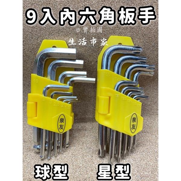 現貨 9入 內角板手 球型板手 星型板手 六角棒 六角板手 DIY板手 板手組 手工具組