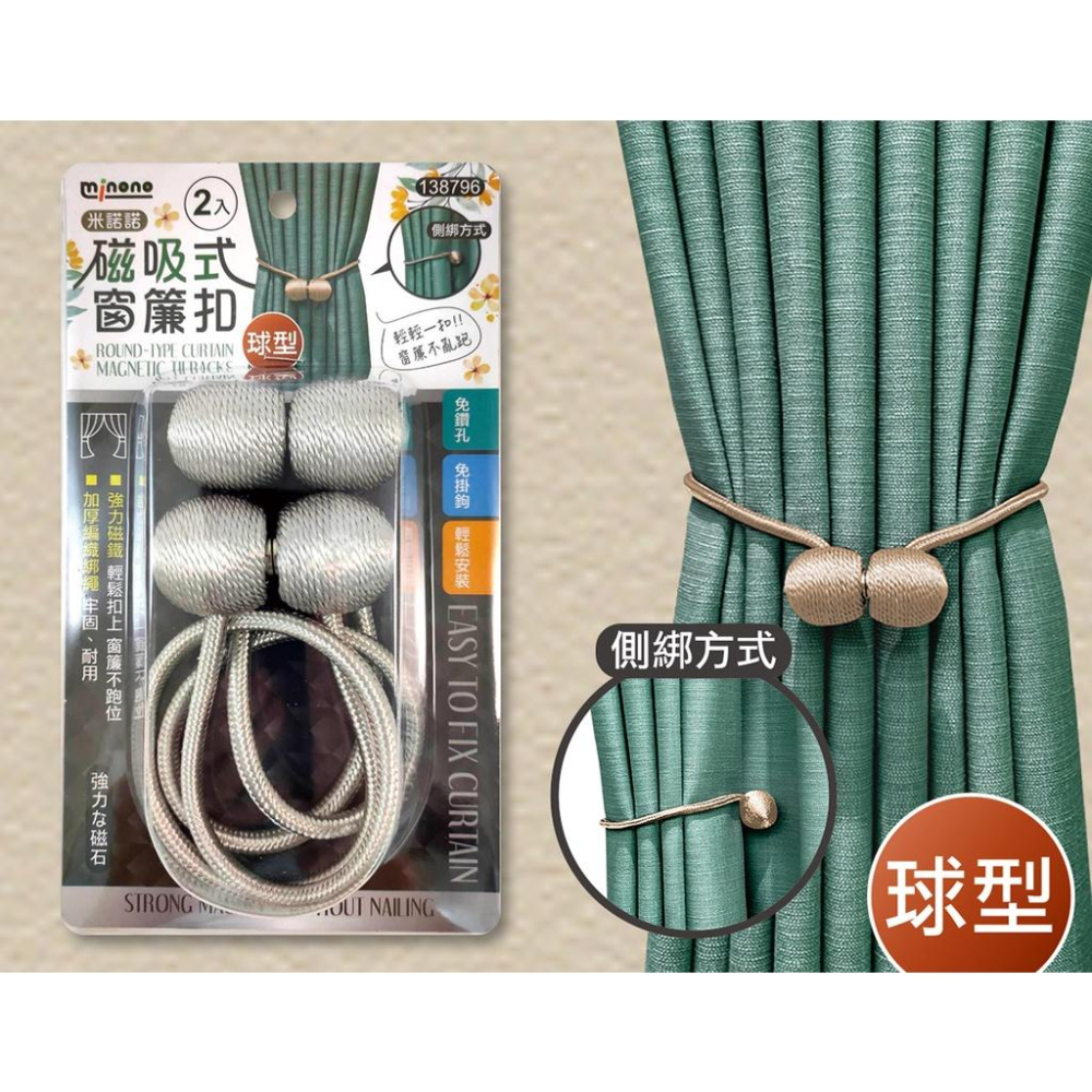 現貨 2入 球型 磁吸式窗簾扣 窗簾扣環 磁吸窗簾扣 窗簾綁繩 磁吸式 強力磁鐵 窗簾收納繩 窗簾磁扣