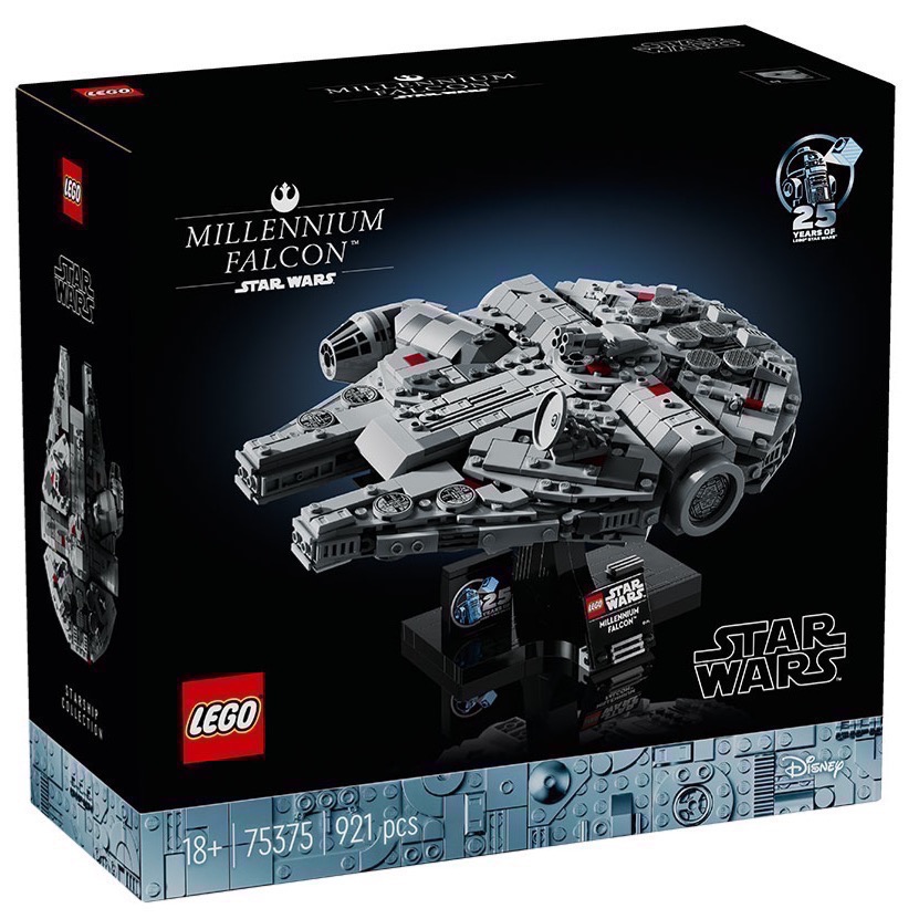 - 專為展示而設計-拼砌式底座有銘牌與樂高® 星際大戰™ 25 週年紀念積木,專為以動態角度展示Millennium Falcon而設計