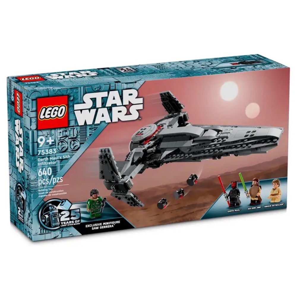- 積木組成的樂高® 星際大戰™ 達斯魔星際飛船玩具-用這款 Darth Maul's Sith Infiltrator 兒童拼砌玩具重現達斯魔的西斯滲透者與血翼飛行器,並上演《星際大戰首部曲:威脅潛伏》的場景