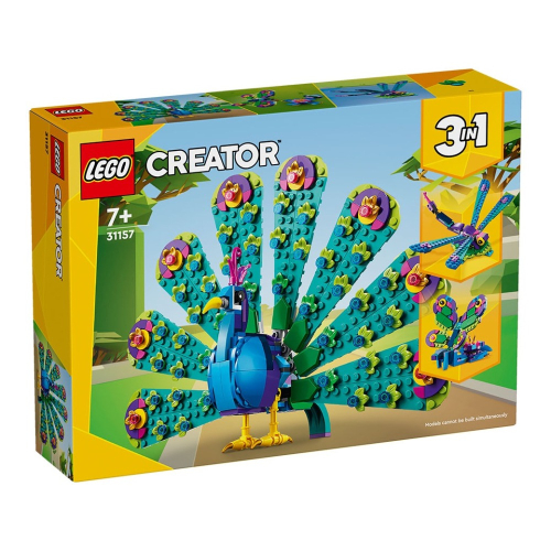 - 1 套盒組,3 種樂高® 動物玩具(包括孔雀玩具)-有了這款 LEGO Creator 異國孔雀 3 合 1 盒組,7 歲以上男孩與女孩可用相同積木拼砌和重新拼砌 3 種不同模型