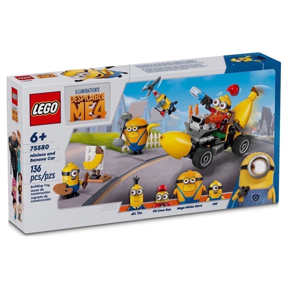 將樂高® 神偷奶爸 4 小小兵和香蕉車(75580)送給小小兵粉絲。這款創意兒童玩具包含 4 個小小兵、小型汽車玩具與配件。這款趣味電影玩具禮品適合 6 歲以上男孩和女孩,以及照明娛樂《神偷奶爸 4》的粉絲。