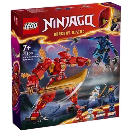7 歲以上孩子可用赤地的火元素機械人(71808)忍者玩具,重現《旋風忍者® 猛龍崛起》第 2 季的故事。機械人有可動手臂與腿,能傾斜和扭轉,擺出戲劇化的戰鬥姿勢,還有可放進忍者人偶的駕駛艙與黃金大劍配件,可用於對抗狼族機械人的角色扮演大戰。