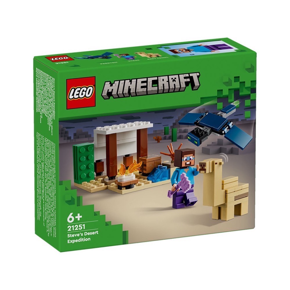 這款適合 6 歲以上玩家的 LEGO® Minecraft® 玩具是第一款 Minecraft 沙漠生態域的兒童拼砌玩具。Steve's Desert Expedition(21251)向孩子發起挑戰,在惡劣環境中拼砌 Minecraft 房屋,接著保衛房屋不被飛行的幻影攻擊。