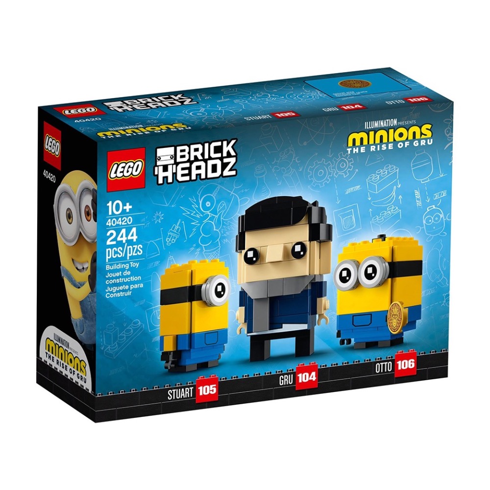 - 這款40420 具有收藏價值的建築組合讓孩子們可以通過格魯的崛起電影中的 3 個可識別角色來構建有趣的樂高® Brickheadz™ 模型。