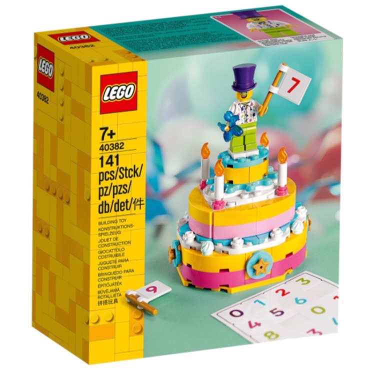 祝您樂高LEGO®粉絲生日快樂!這款樂高標誌性生日套裝(40382)! 這個色彩繽紛的建築玩具的特色是磚砌蛋糕,上面有一層您可以旋轉,另外還有裝飾品,包括可燃蠟燭和氣球動物元素。 在貼有蛋糕的蛋糕上放著一個頂帽子的小人物,上面有不干膠標籤上的生日男孩或女孩的年齡。 非常適合單人或團體聚會,這是慶祝特殊日子的有趣方式!
