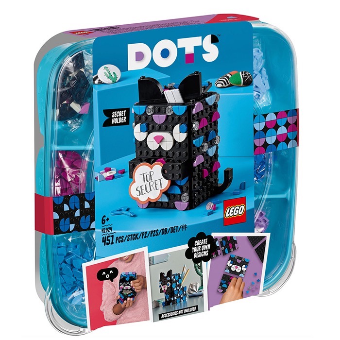 - 用 LEGO® DOTS 系列盒組給孩子可以創作與使用的迷人工藝品。這款酷炫的貓密造型秘密保管箱提供自由不受限的設計靈感,有助培養孩子的創意與自信。