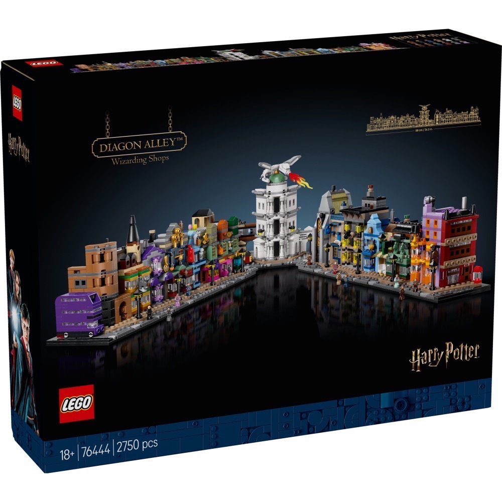 - 給大人的樂高® 哈利波特™ 斜角巷™ 巫師盒組-用這款微型模型刻劃斜角巷的迷人氛圍、忠實還原其中魔法商店的細節