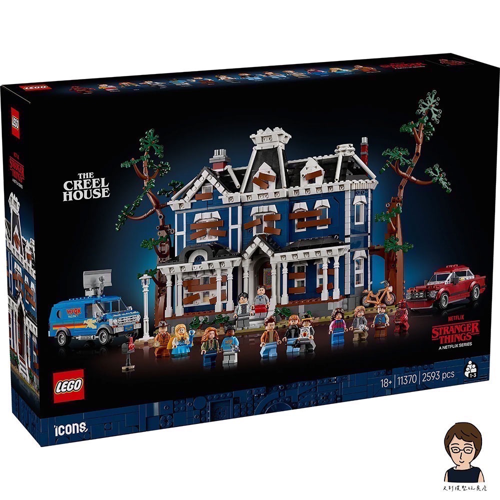 透過給大人的 LEGO® Icons 怪奇物語:克里爾家(11370)迷你房屋拼砌組合走進上下顛倒的世界。這款令人難忘的精緻模型重現了散發不祥氣息的哥德風格莊園,並配有史帝夫的汽車、WSQK 廣播電台廂型車與威爾的腳踏車。房屋具備裝飾繁複的立面,背面為開放式,可進入玄關、餐廳、客廳、愛麗絲的臥室、亨利的臥室、讓人戰慄的樓上走廊與 2 個閣樓空間。