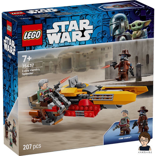 在這款精采有趣的樂高® 星際大戰™ 載具兒童玩具拼砌盒組(75437)中,跟柯布范思聯手對抗卡德班恩,上演刺激的戰鬥場景。拼砌精緻的樂高積木模型,重現《星際大戰:曼達洛人™》第 2 季裡柯布范思的超讚飛行器。機身配備柯布范思樂高人偶的駕駛座、手槍的夾子,還有隱藏隔間可收納波巴費特的頭盔與藍班達奶盒等經典配件。內附的卡德班恩樂高人偶配有 2 把爆能手槍,柯布也附噴射背包,可用於空中動作遊戲。 此拼砌玩具是一款亮眼禮品,適合 7 歲以上男孩、女孩,以及《星際大戰:曼達洛人》或《星際大戰:波巴費特™》的粉絲,也是透過玩樂激發孩子想像力的絕佳方式。 孩子可使用 LEGO Builder 應用程式享受直觀的拼砌體驗,用 3D 拼砌說明縮放與旋轉模型,同時儲存和追蹤進度-一切都在應用程式裡完成。此盒組包含 207 個零件。