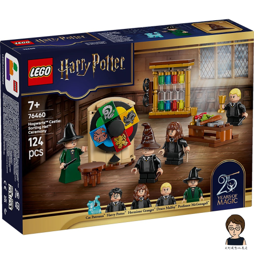暢玩這款樂高® 哈利波特™ 兒童拼砌盒組(76460),重溫《哈利波特:神秘的魔法石™》中,霍格華茲™ 城堡的分類帽™ 儀式。此盒組是適合 7 歲以上男孩、女孩與粉絲的趣味哈利波特玩具禮品,內有 4 隻樂高哈利波特人偶:麥教授™、哈利波特、妙麗格蘭傑™ 和跩哥馬份™。將分類帽戴到每個學生頭上,然後轉動「分院轉盤」,看看他們會加入哪個霍格華茲學院。晚餐桌和學院分沙漏為遊戲增添更多可能性。 此兒童冒險組合向 2001 年推出的史上首款樂高哈利波特盒組(4701)致敬,並包含 1 個值得收藏的 25 週年紀念護法(共有一系列可蒐集):麥教授的貓護法™。 此盒組可放進 Hogwarts Castle: The Great Hall(76435),即一系列模組化拼砌玩具中的另一款盒組(每款均為單獨販售),這些玩具能共同打造出迄今最精緻的樂高積木版霍格華茲城堡場景。此盒組包含 124 個零件。