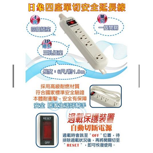 日象zoueshoai 4座 6尺 單切安全延長線 ZOEW-3141-06 1開4插