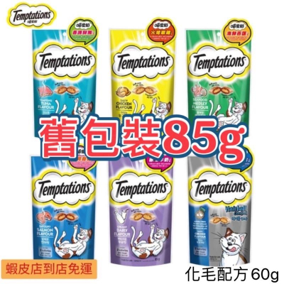 快速出貨🔜Temptations 喵愛餡 貓餡餅 香誘鮮鮪 火烤嫩雞 海鮮百匯 開胃甜鮭 85g 化毛配方 60g