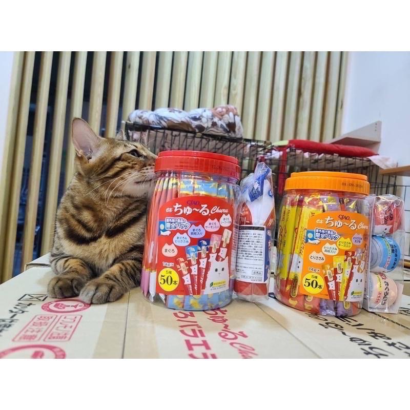 現貨 🔜 CIAO 啾嚕肉泥桶裝50入 肉泥桶(50入/桶) 海外限定 送CIAO玩具 貓肉泥