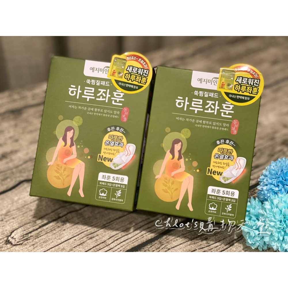 #禮知美人 #艾草坐薰熱敷墊 #經期不適必備 #調理身體必備 韓國進口 禮知美人 艾草漢方坐薰暖敷墊 5入 新包裝! ✨請在經期前後使用~✨(經期期間請勿使用) 仿古時艾草熱薰療法 漢方、觸感、調理、舒緩、熱敷 全方位守護 🎖️ 漢方:100%韓國產漢方成分 🎖️ 觸感: 呵護女性肌膚,純棉表層 🎖️ 調理: 適合手腳冰冷、產後調理、經期不適的人 🎖️ 舒緩: 舒緩生理期中所面對的困擾 🎖️ 熱敷: 溫度持續2~3小時,達到熱薰作用 私心覺得還有另一個功能,冬天使用暖暖滴好舒服!! ▶️材料:棉紙漿、PE膜、發熱包 ▶️成份: 艾草、益母草、魚腥草、薄荷、當歸、川芎、白芷 ▶️原產地:韓國製 ▶️用途: 經期前後使用(經期期間請勿使用),仿古時艾草熱薰療法 ▶️使用方法: 撕開發熱包,上下搖晃5秒或是搓揉5~10下;把護墊撕開,將發熱包黏貼於護墊下方(黏貼面),再將護墊貼在內褲上,撕下翅膀貼紙,反折黏於內褲下方。 ⭕ 注意事項 1.於經期前後使用,依產品建議使用期間為生理期起算第九天~第二十八天這段期間內(非生理期期間) 2.若有出現不適症狀,請暫停使用 3.請存放於乾燥清潔處,避免陽光直射 4.使用後請勿丟入馬桶內 5.建議使用時間為2~3個小時 #禮知美人 #艾草坐薰熱敷墊 #經期不適必備 #調理身體必備