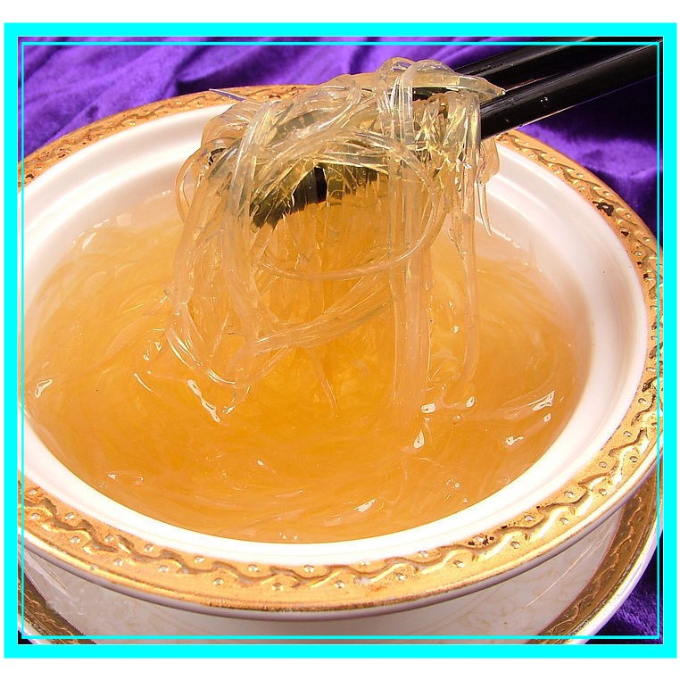 寒天魚翅,寒天抽取物製作,寒天因為熱量超低,所以晚上當消夜吃也很不錯,一般時候,溫水泡個五分鐘,就發漲