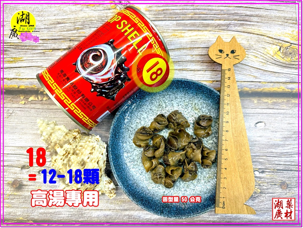 相較另一規格 18 (固形物50g),內裝螺肉較小顆,約50公克固型量的小螺肉約12-18顆左右, 固名18號,18號的規格,他最主是設計用來增加魷魚螺肉蒜湯頭的風味,也就是高湯專用,較不注重螺肉分量與大小. 所以自己吃粗飽加美味全部使用 兩罐SP螺肉罐頭去煮,