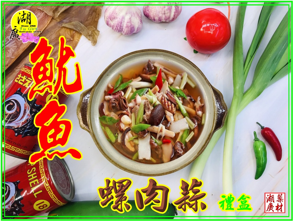 遇到度小月,交情普通的友人來訪,兩罐18號螺肉足矣. 隨便煮一煮,依然是一鍋台灣獨有世界名菜 〝魷魚螺肉蒜〞.