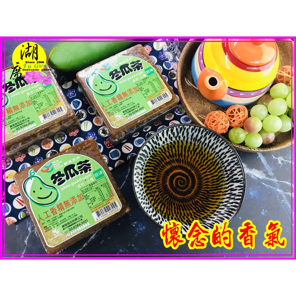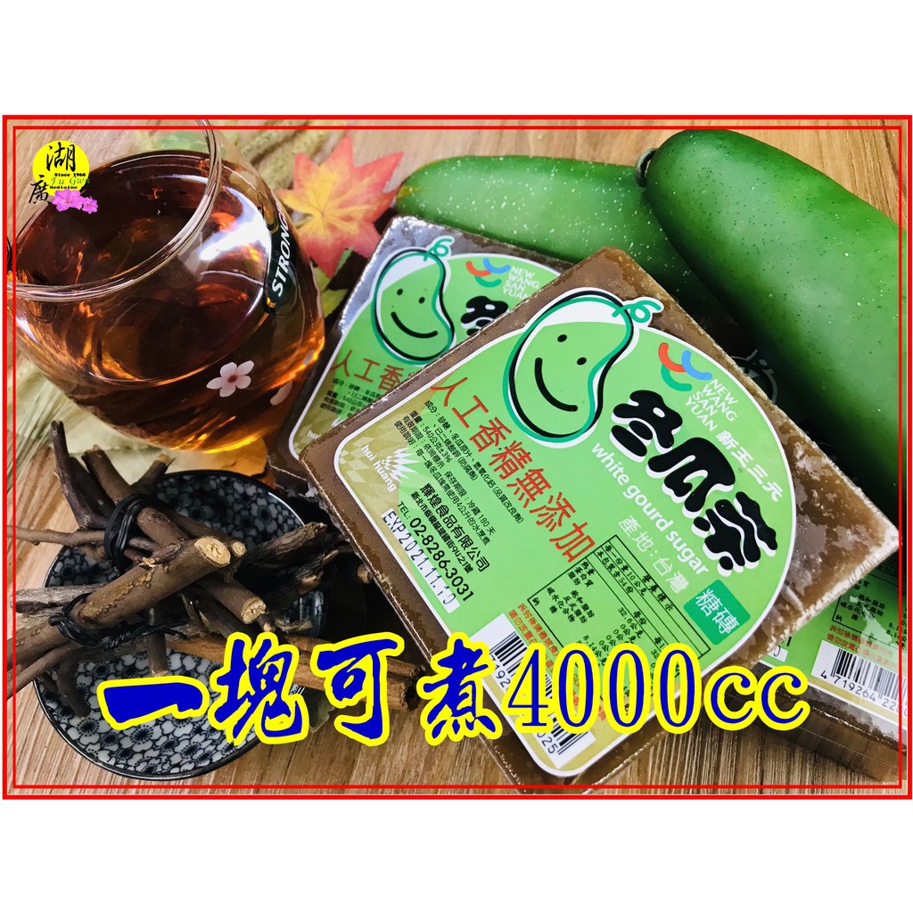 新王三元 冬瓜茶茶磚,台灣生產,無香精添加, 每塊540公克,可以熬煮4000CC的冬瓜茶,煮好放涼後,裝到寶