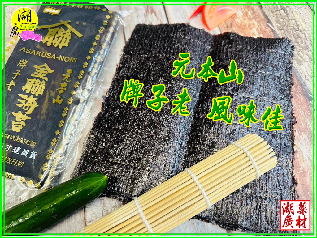 元本山 金聯壽司海苔片,韓國製造,原裝進口, 牌子最老,氣味最佳,是所有大餐廳,飯店主廚的不二選擇.