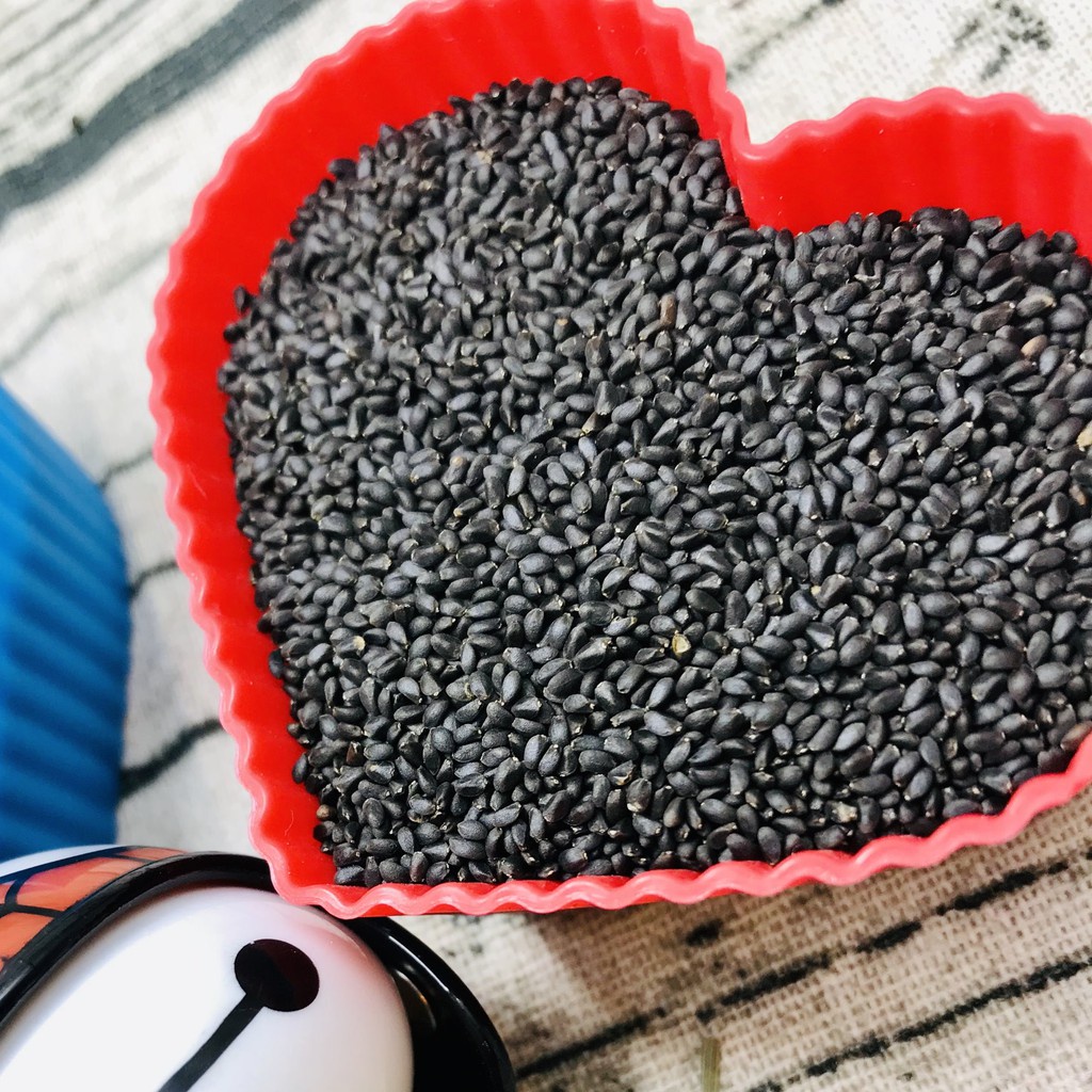 小紫蘇子呈長圓卵形,黑色略帶光澤感,長約2mm,種子表面布滿微絨毛,